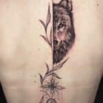 Tetování květiny, ornamenty, zvíře vlk na páteř