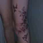 Tetování květiny pivoňka, zvířata vlaštovky na nohu