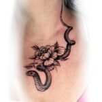 Tetování květiny, pivoňka, zvíře had na hrudník