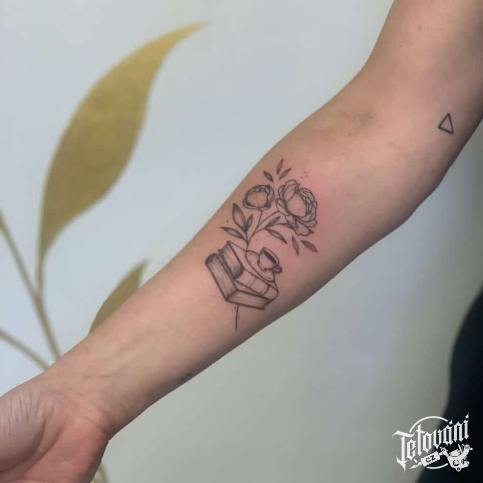 Tetování květiny, pivoňky na předloktí