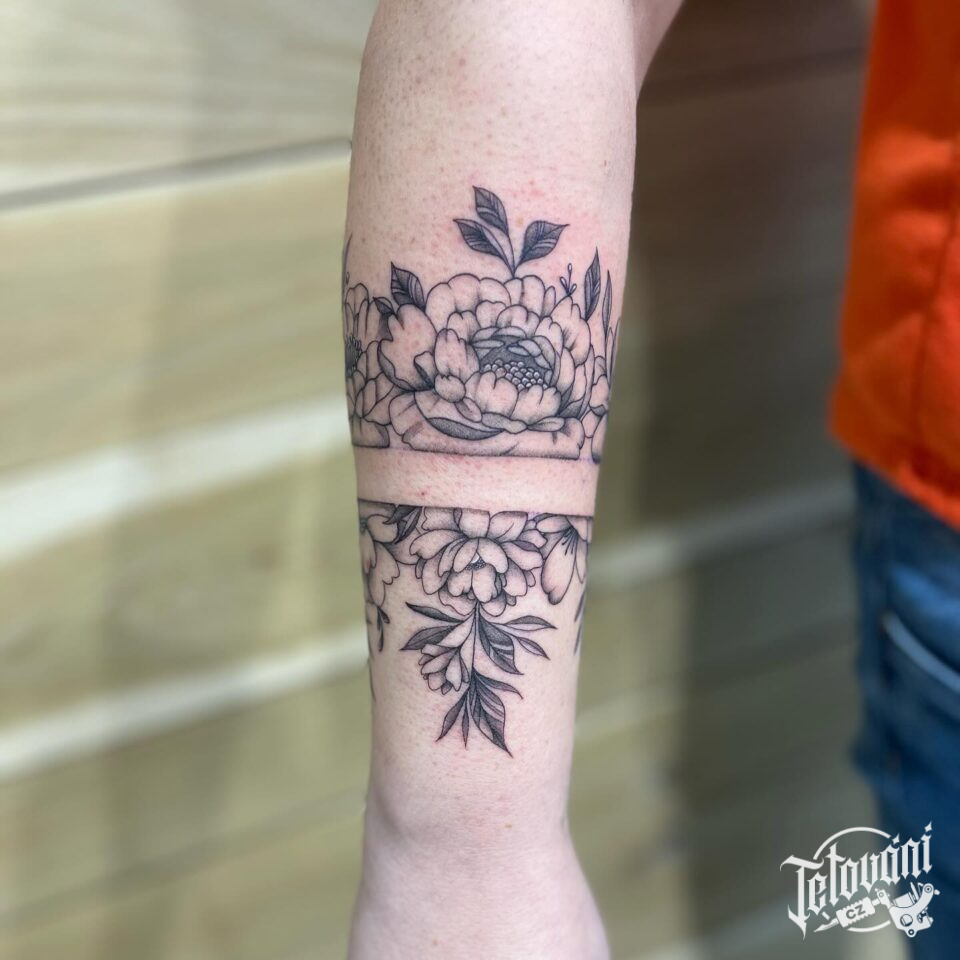 Tetování květiny, pivoňky na předloktí