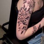 Tetování květiny pivoňky na rameno