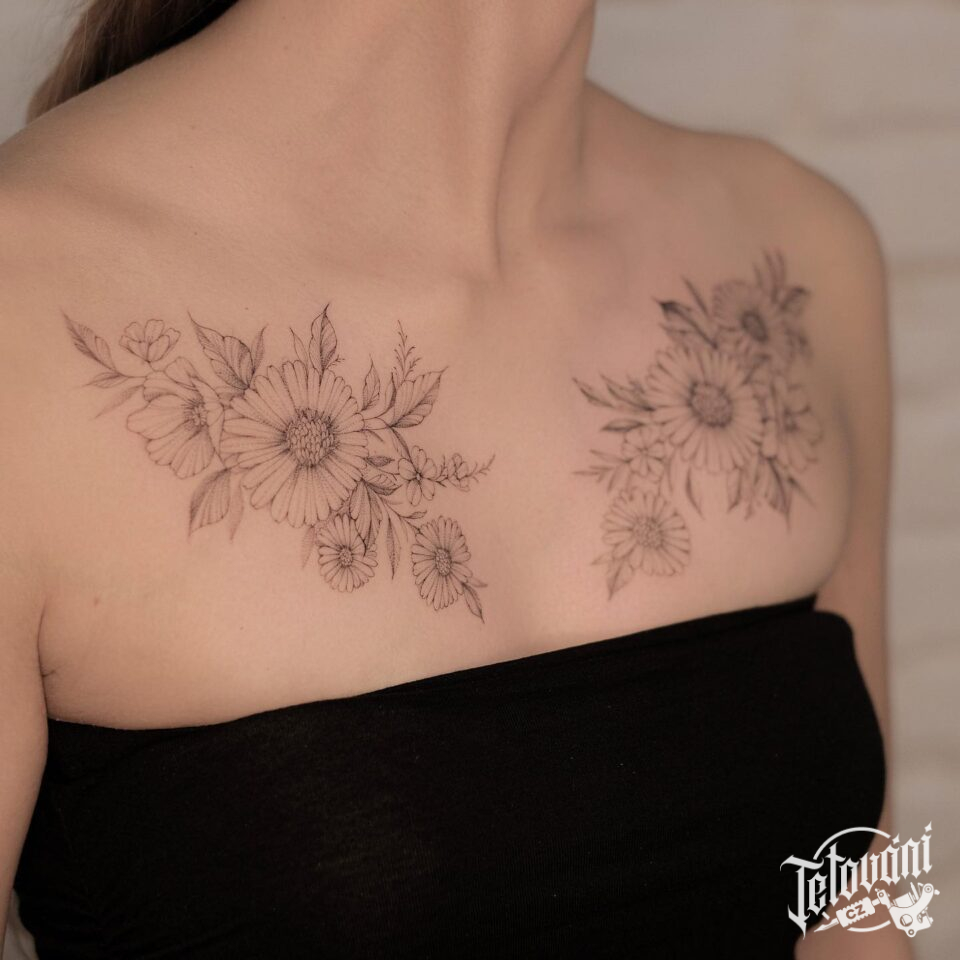 Tetování květiny pod klíční kost