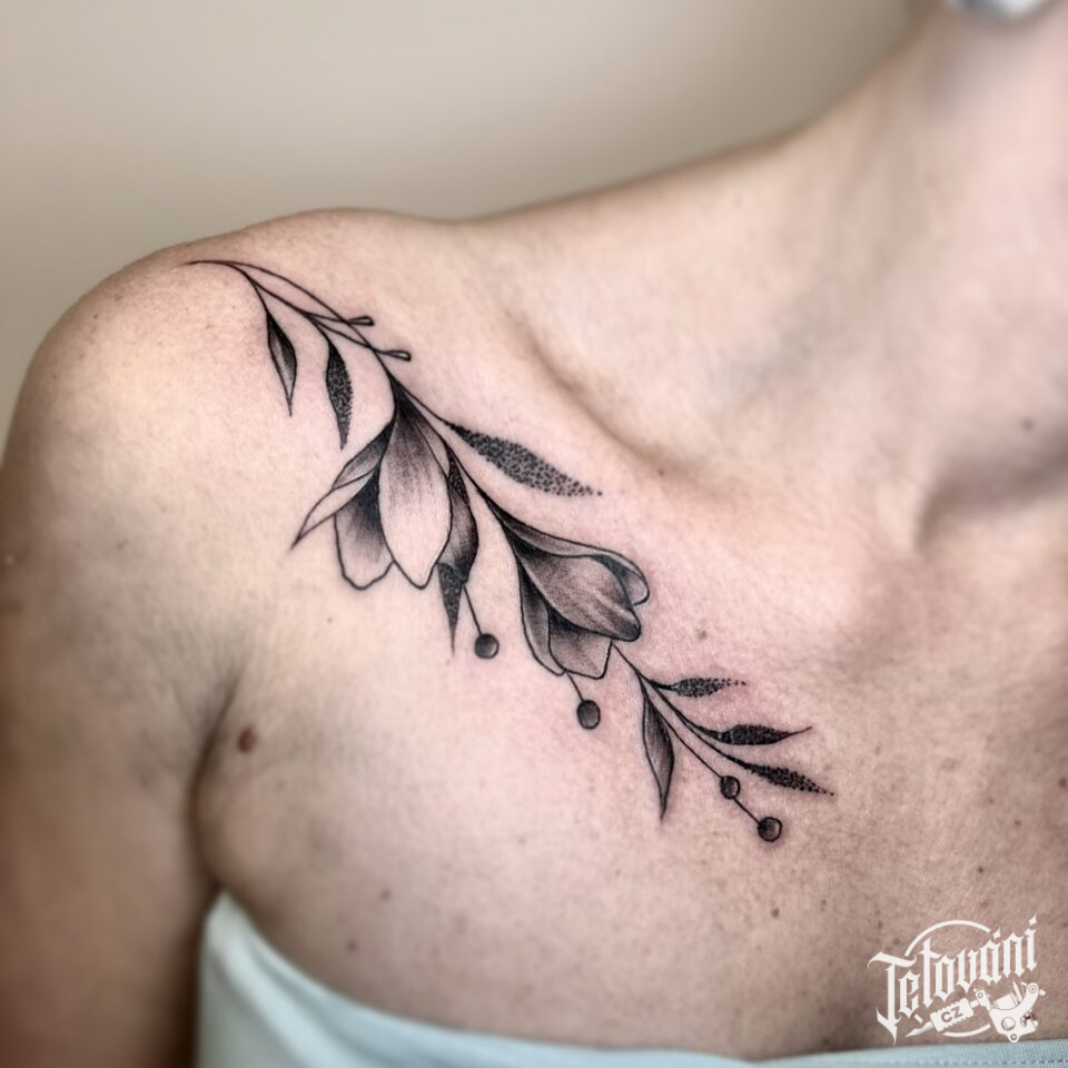 Tetování květiny pod klíční kost