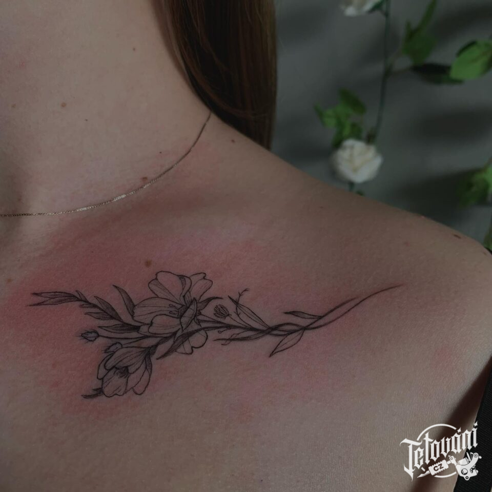 Tetování květiny pod klíční kost