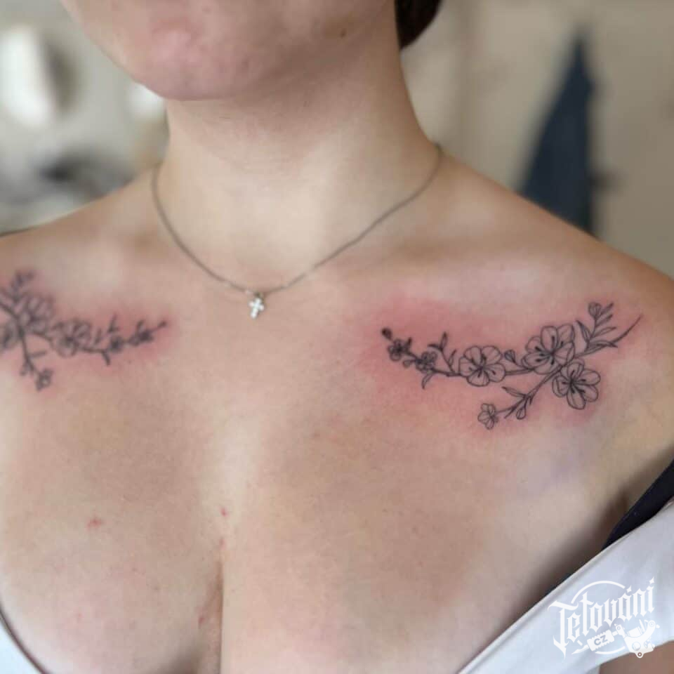 Tetování květiny pod klíční kostí