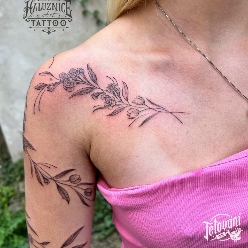 Tetování květiny pod klíční kostí