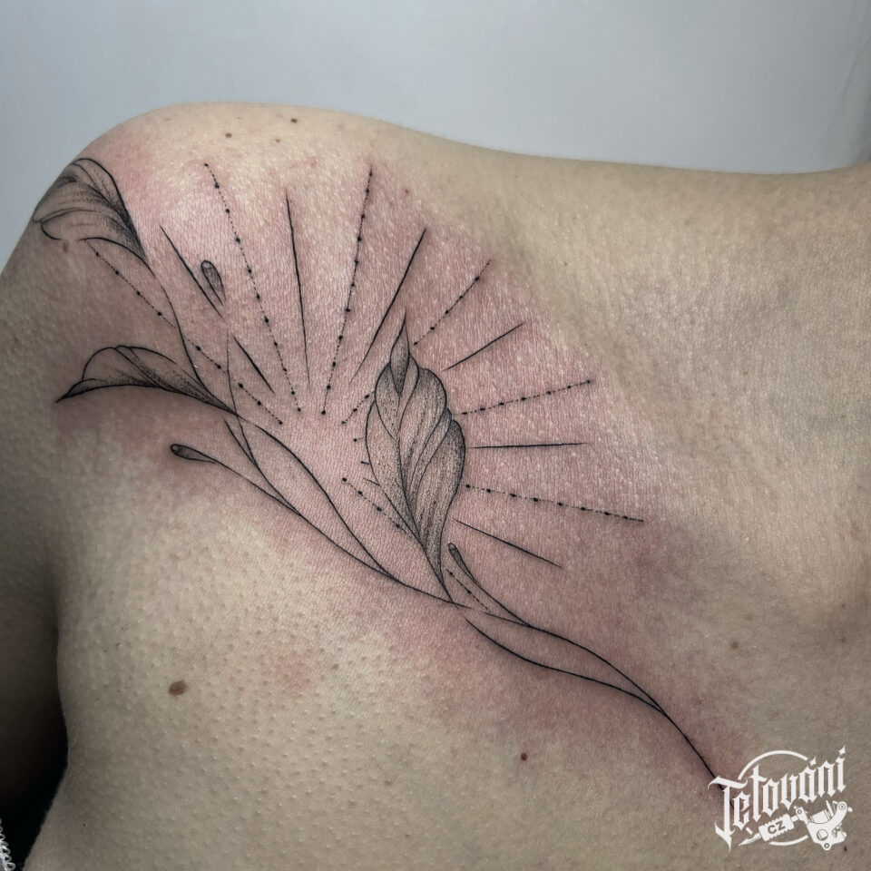 Tetování květiny pod klíční kostí