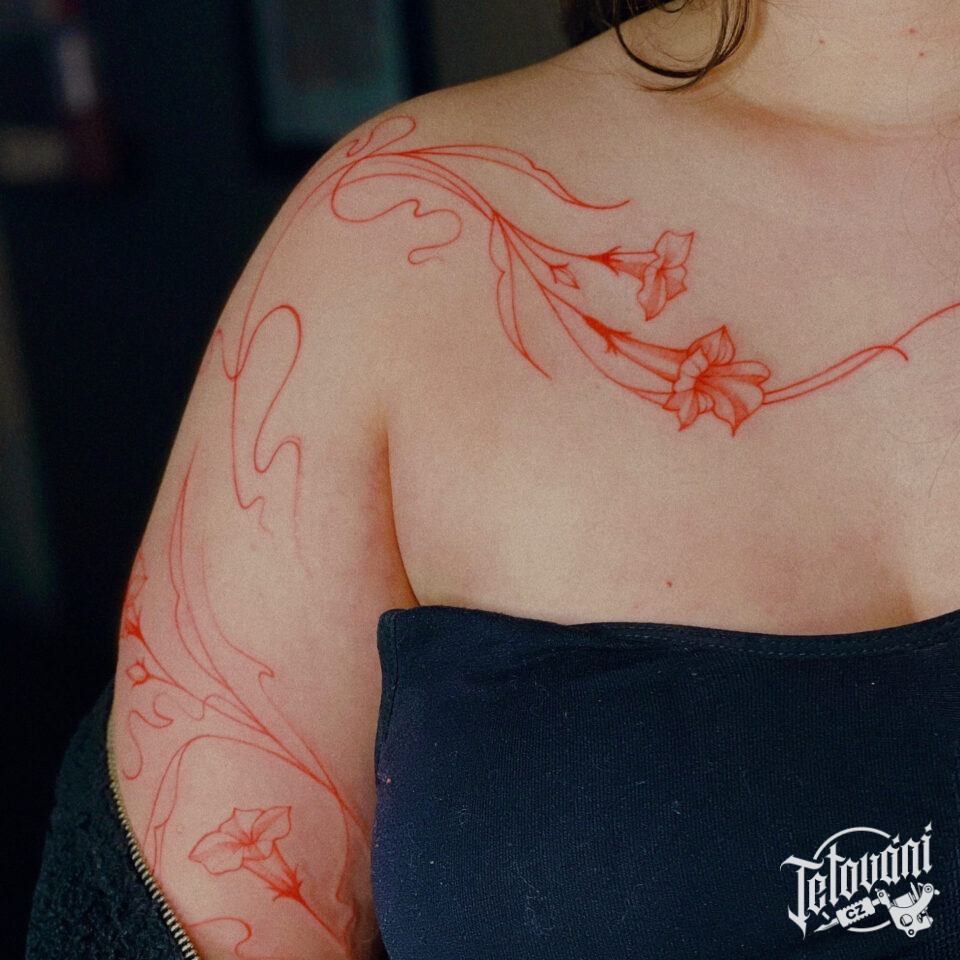 Tetování květiny pod klíční kostí