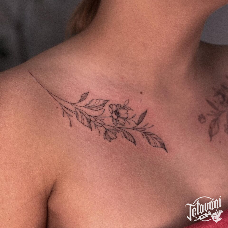 Tetování květiny pod klíční kosti