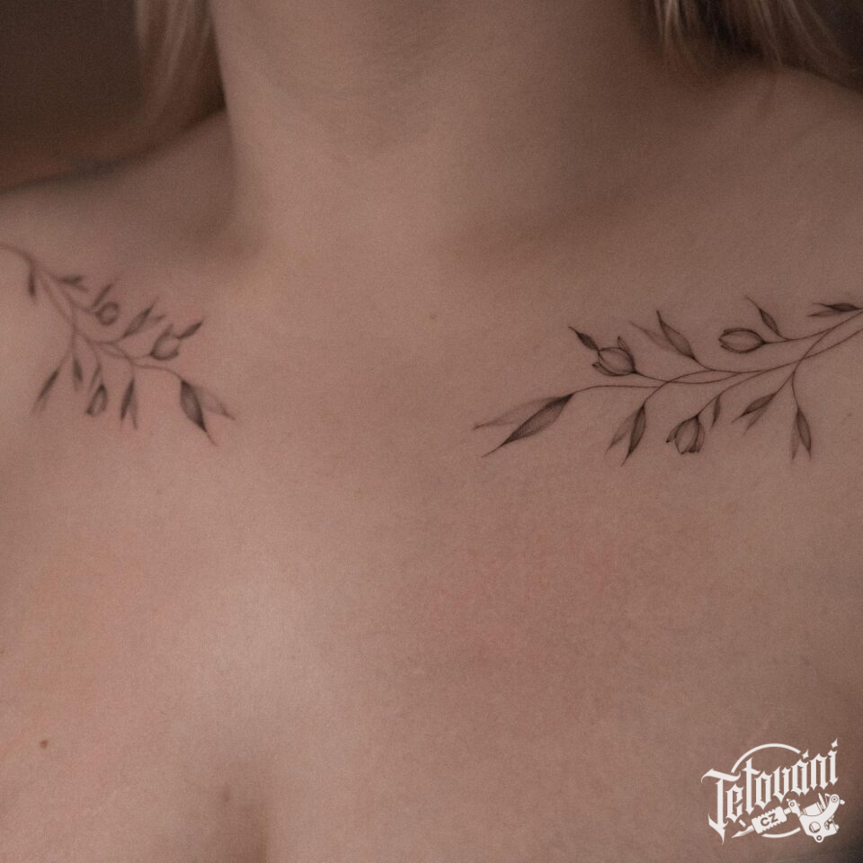 Tetování květiny pod klíční kosti
