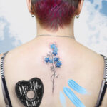 Tetování květiny pomněnky mezi lopatky