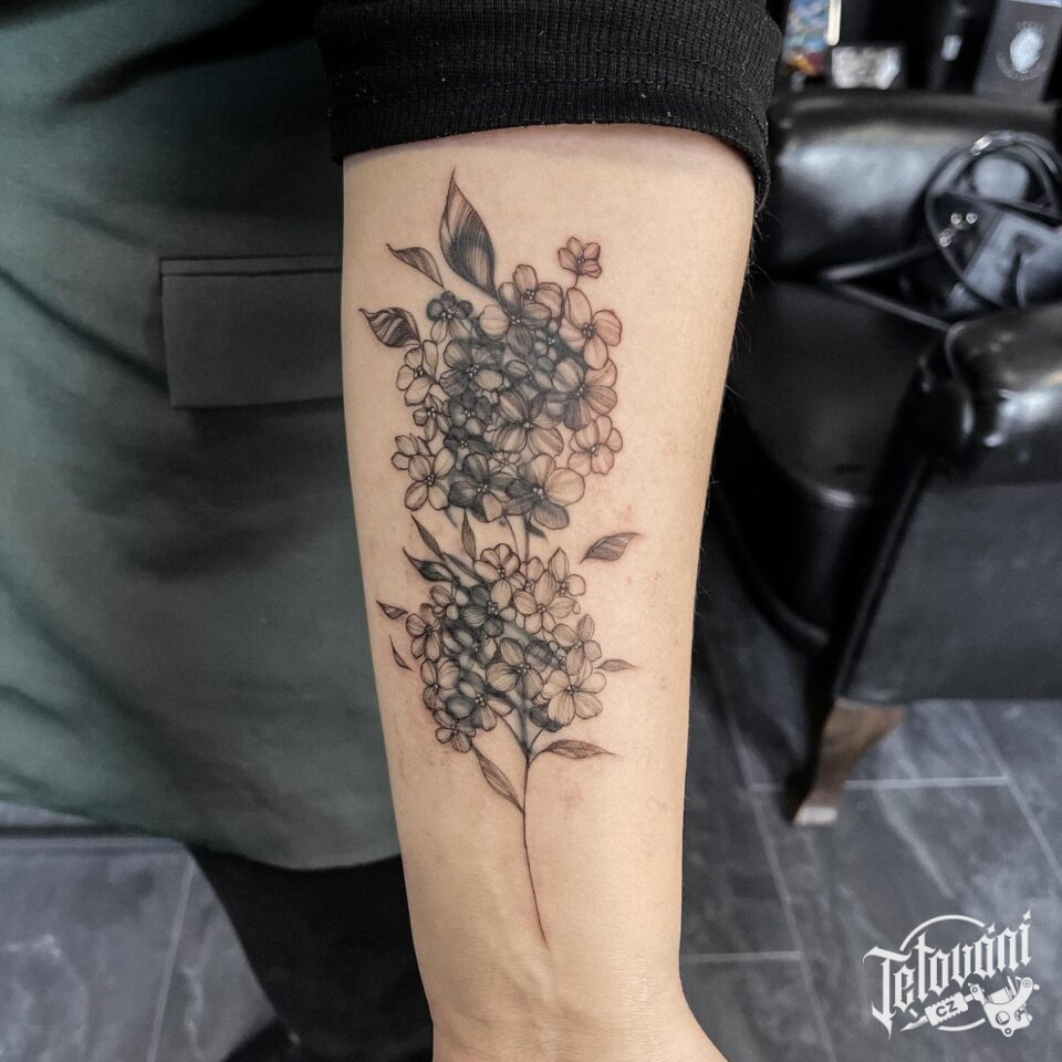 Tetování květiny, pomněnky na předloktí
