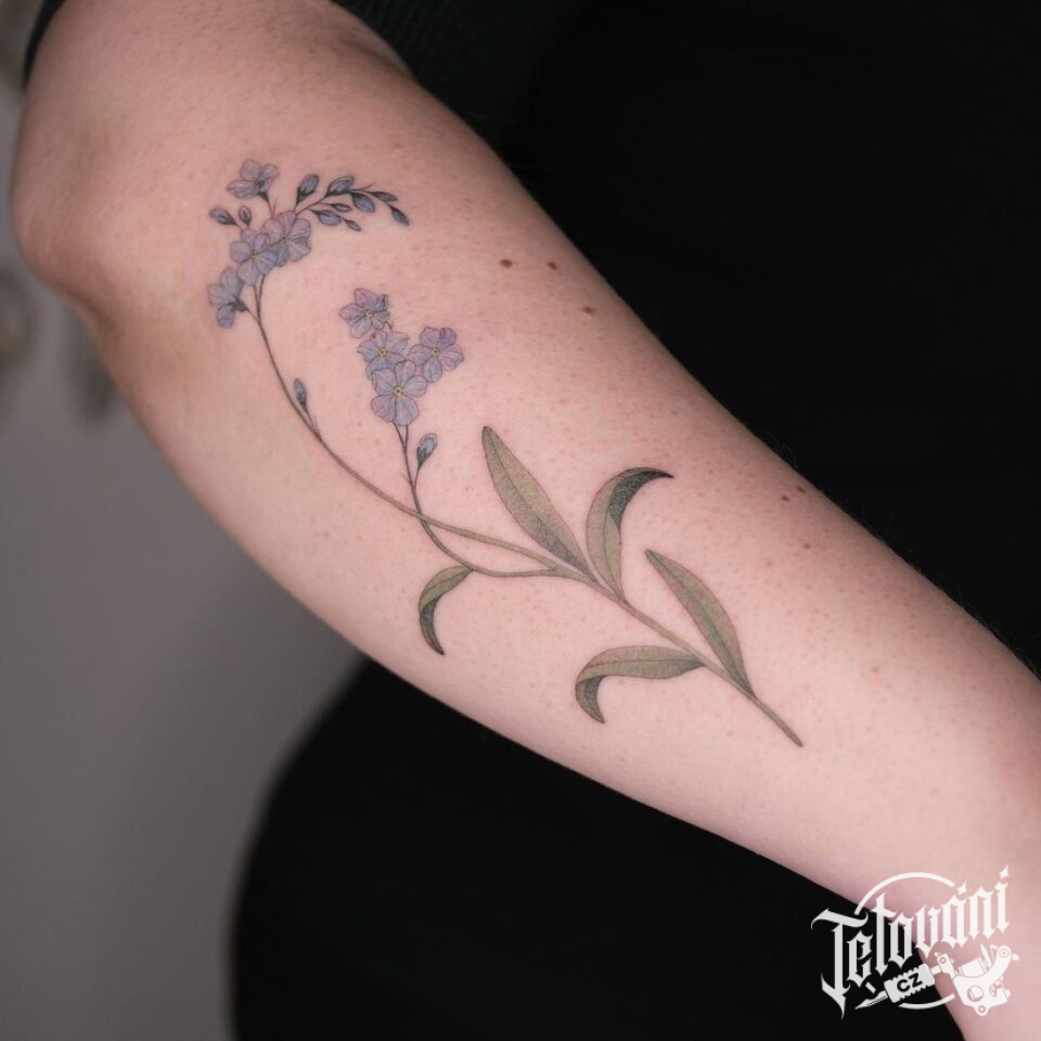 Tetování květiny pomněnky na předloktí