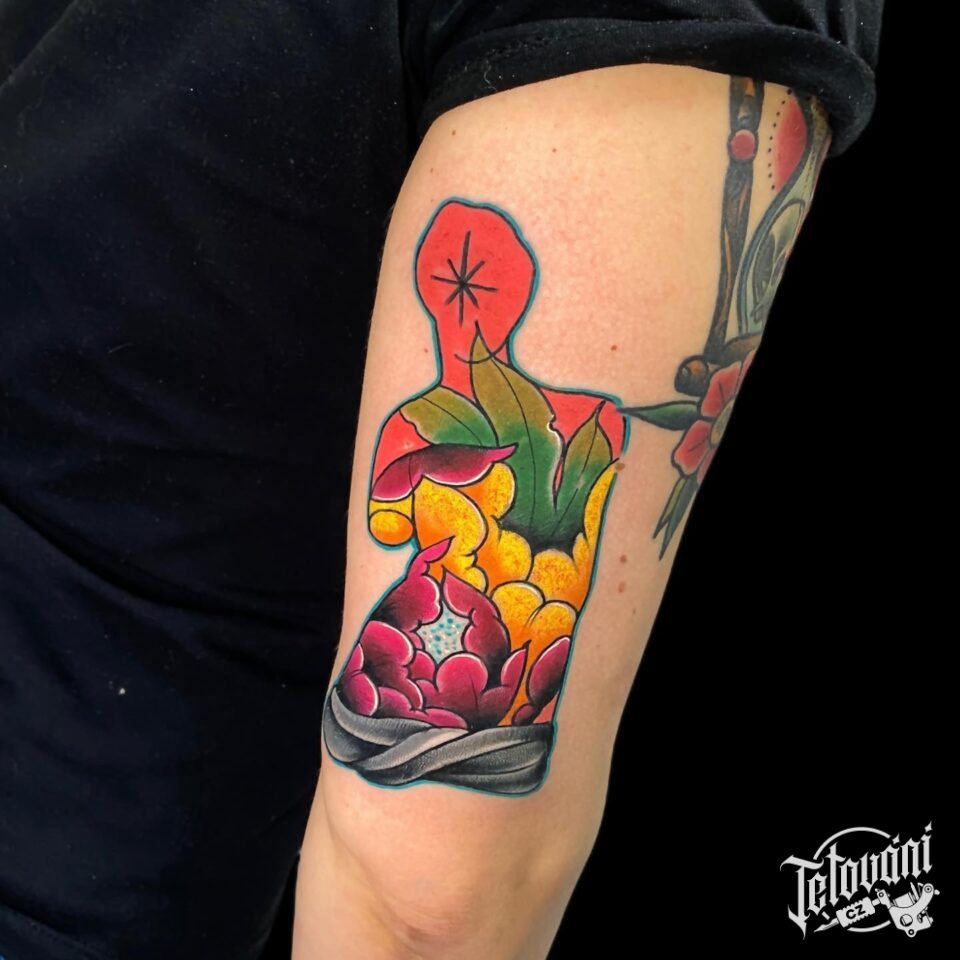 Tetování květiny, postavička na paži