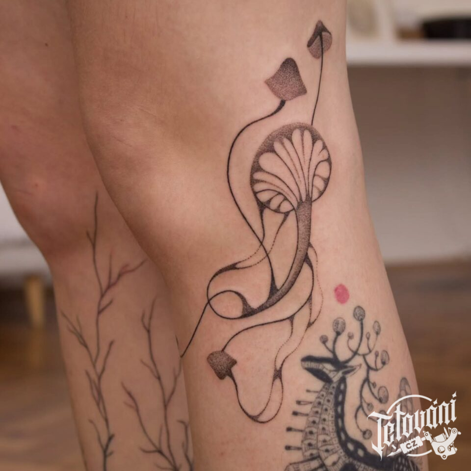 Tetování květiny, rostliny na koleni