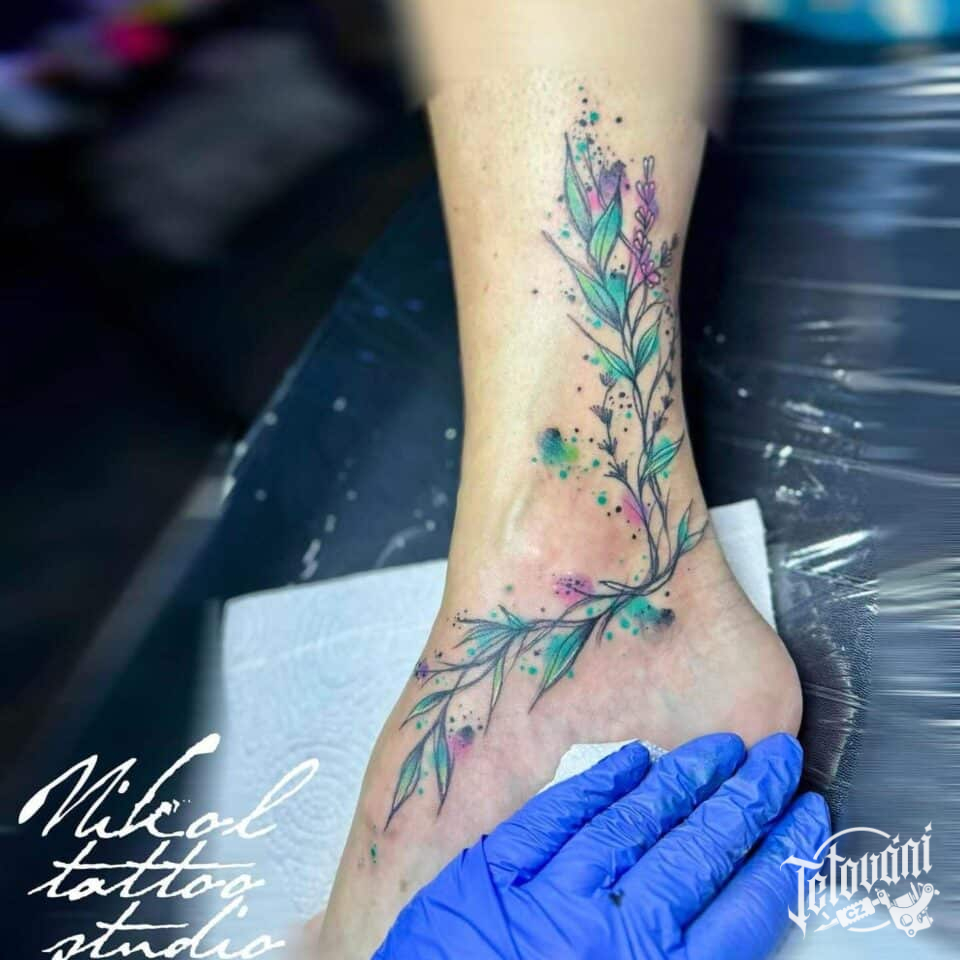 Tetování květiny, rostliny na kotníku