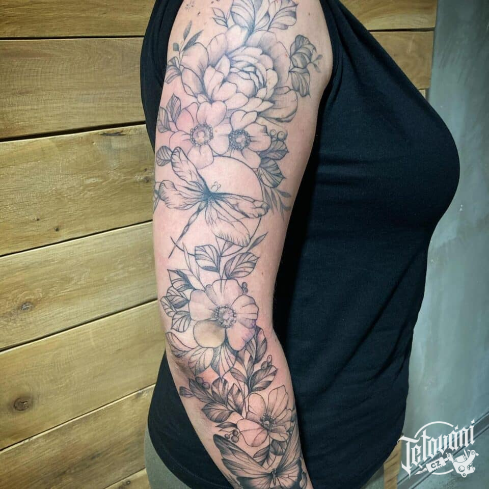 Tetování květiny, rukáv