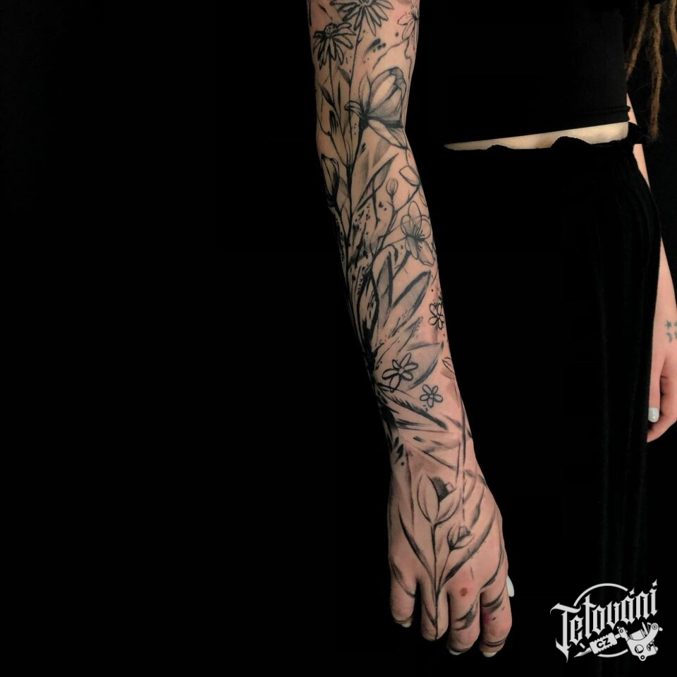 Tetování květiny, rukáv