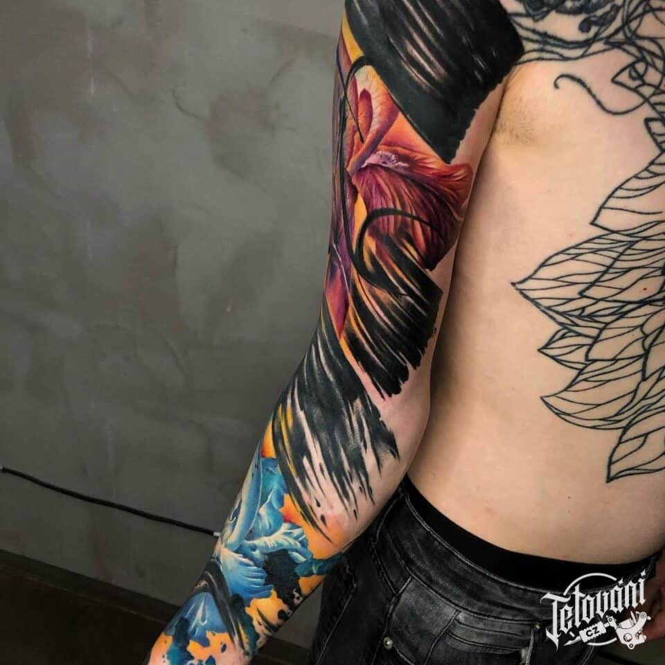 Tetování květiny, rukáv