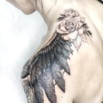 Tetování květiny, růže a křídlo