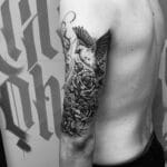 Tetování květiny, růže, holubice, zvíře na rameno