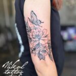 Tetování květiny, růže, motýl na paži