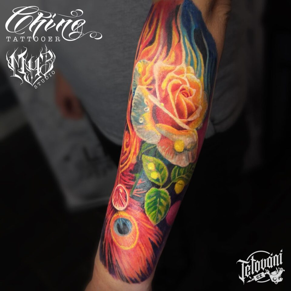 Tetování květiny, růže na předloktí