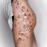 Tetování květiny, růže na bok stehno