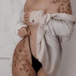 Tetování květiny, růže na boku stehna