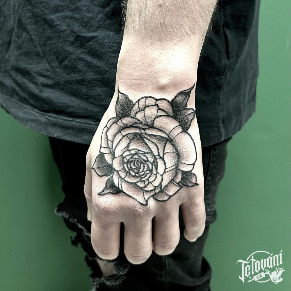 Tetování květiny, růže na hřbet ruky