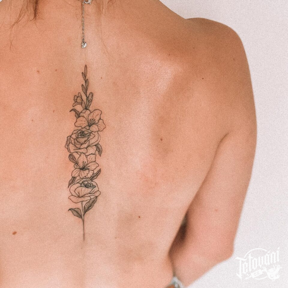 Tetování květiny, růže na páteři