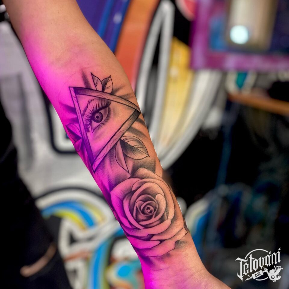 Tetování květiny, růže na předloktí