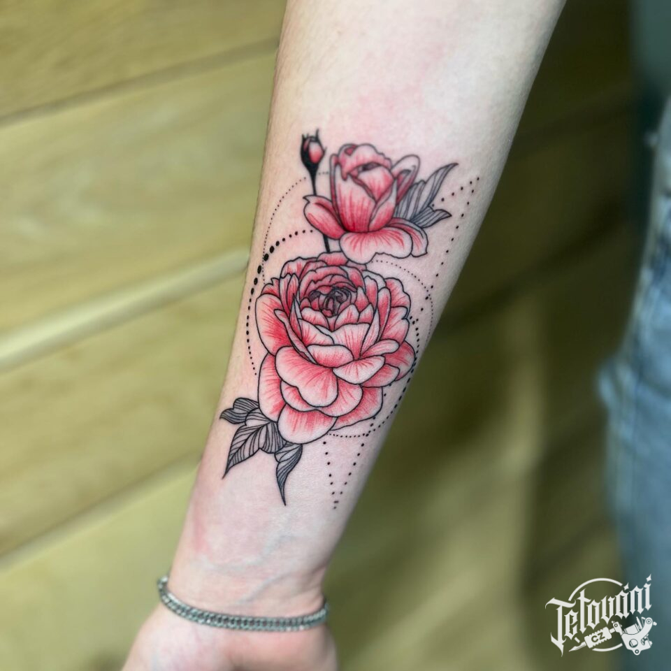 Tetování květiny, růže na předloktí