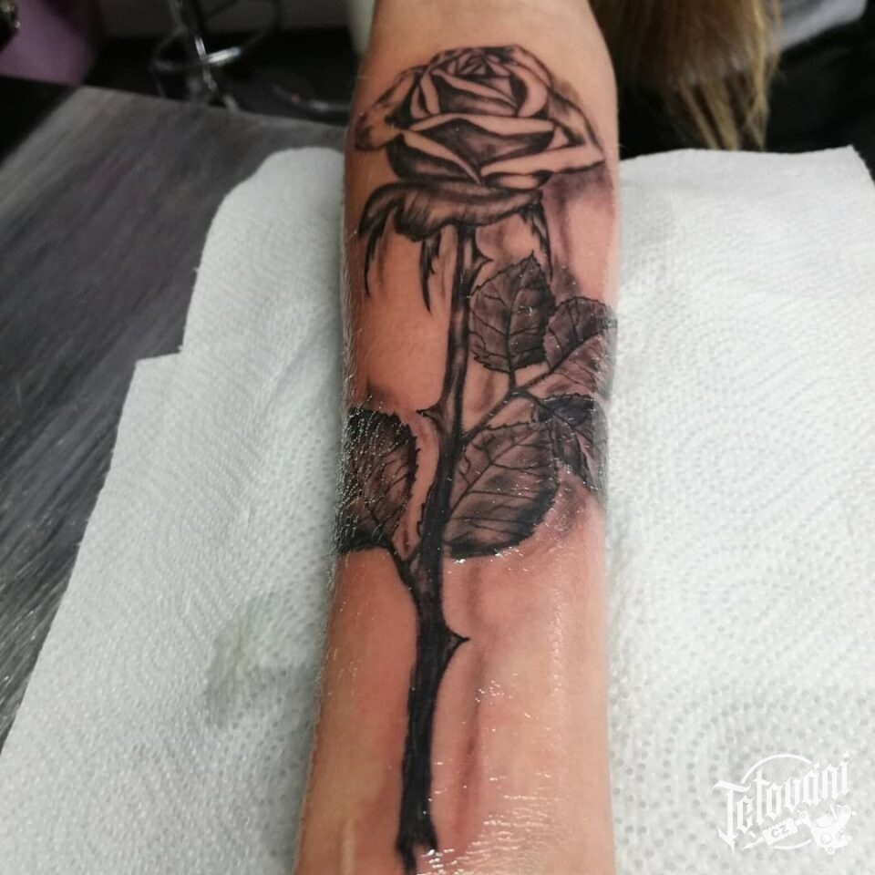 Tetování květiny, růže na předloktí