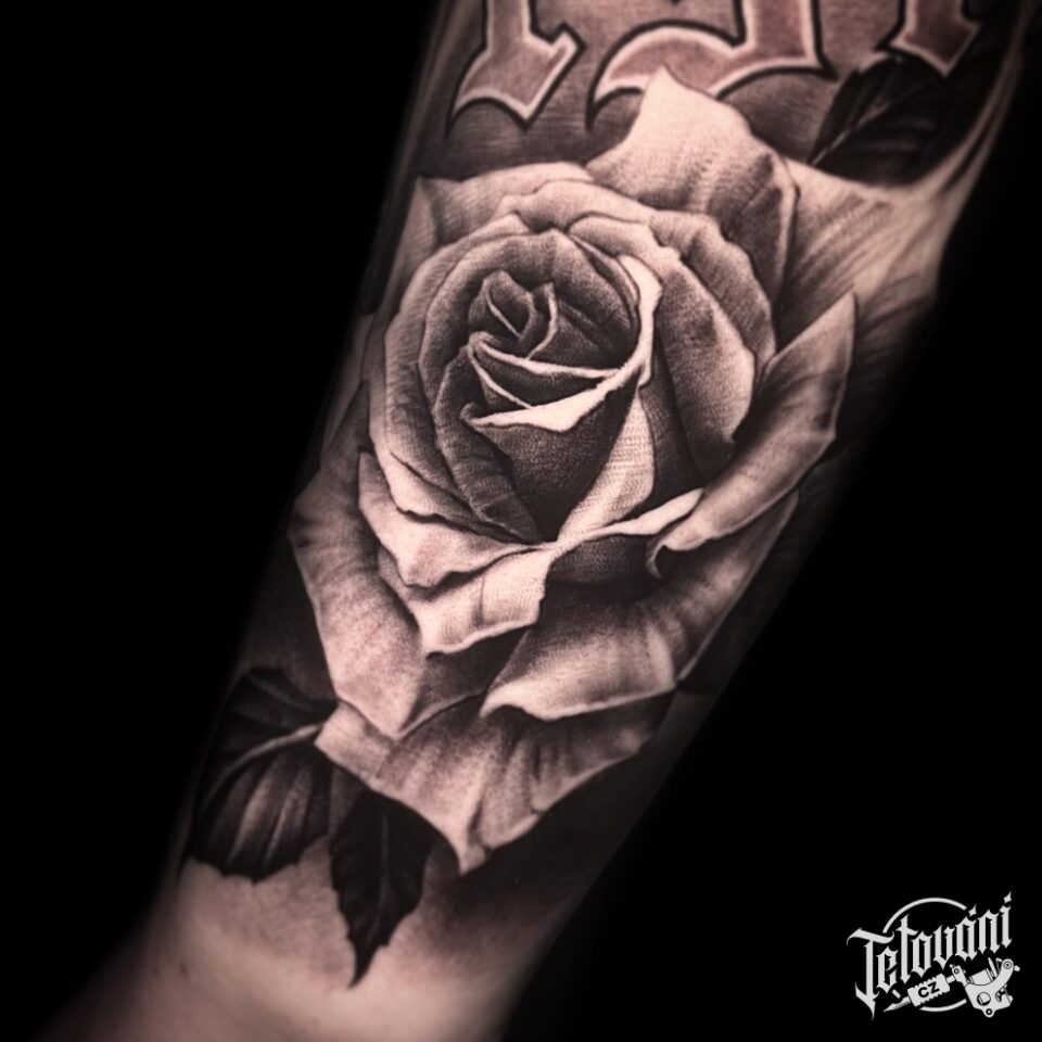 Tetování květiny, růže na předloktí