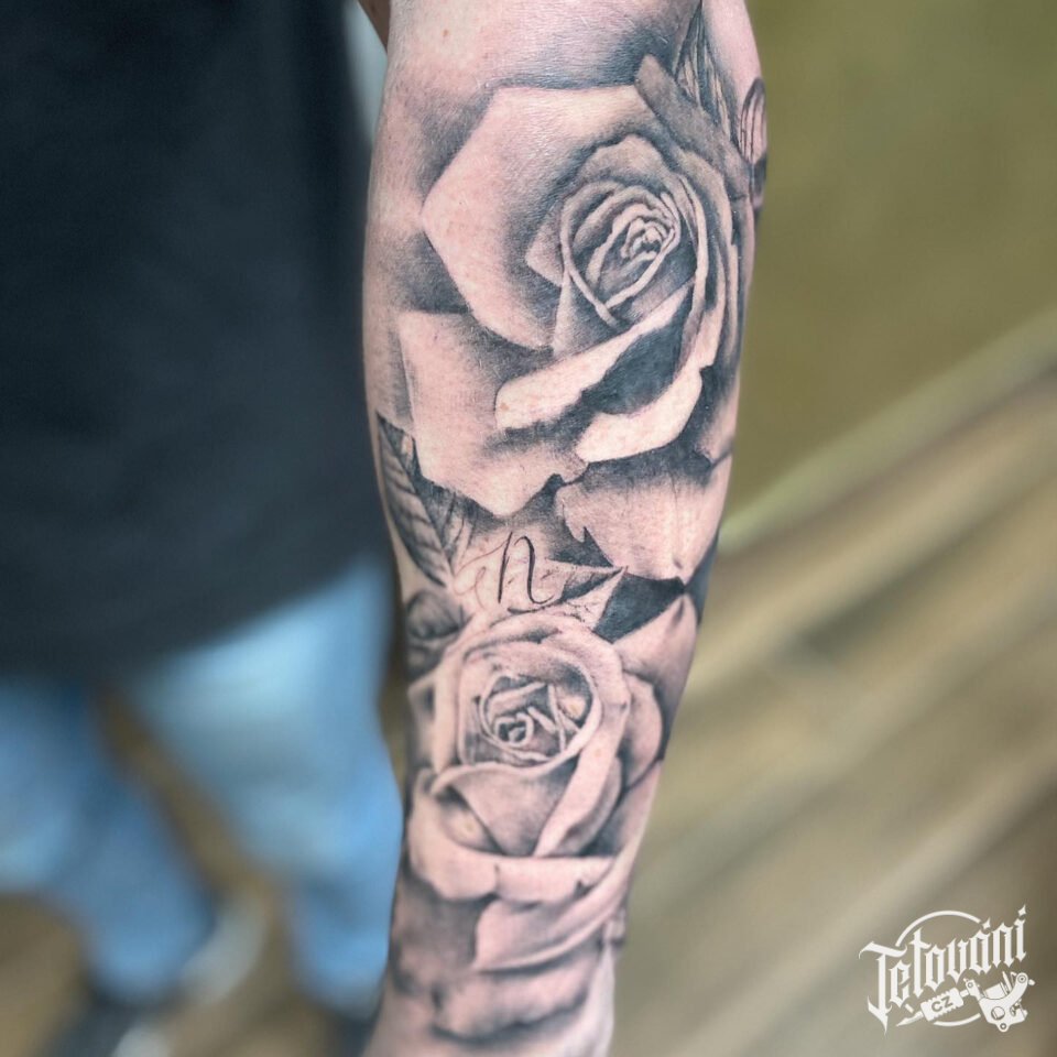 Tetování květiny, růže na předloktí