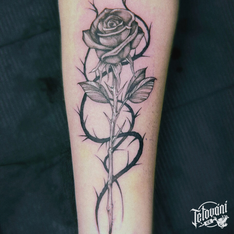 Tetování květiny, růže na předloktí