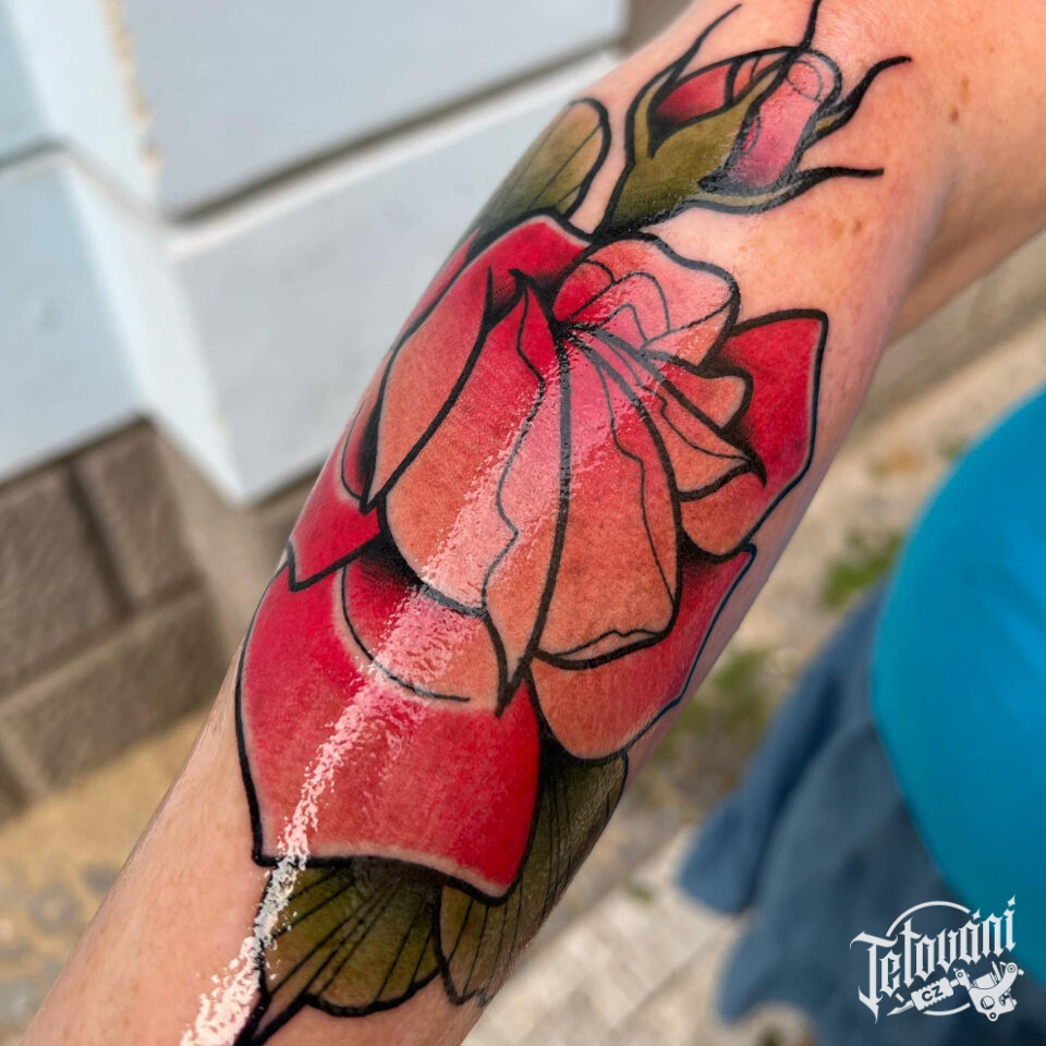 Tetování květiny, růže na předloktí