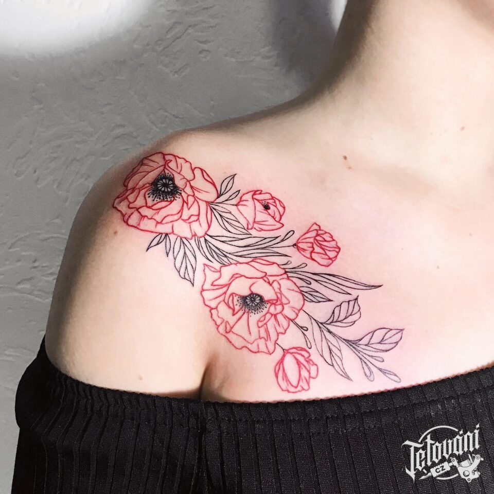 Tetování květiny, růže na rameni