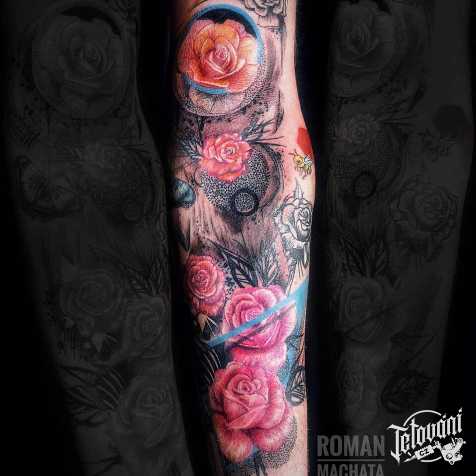 Tetování květiny, růže na rukávu