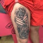 Tetování květiny, růže na stehně