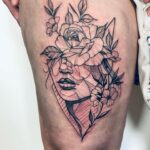 Tetování květiny růže na stehno
