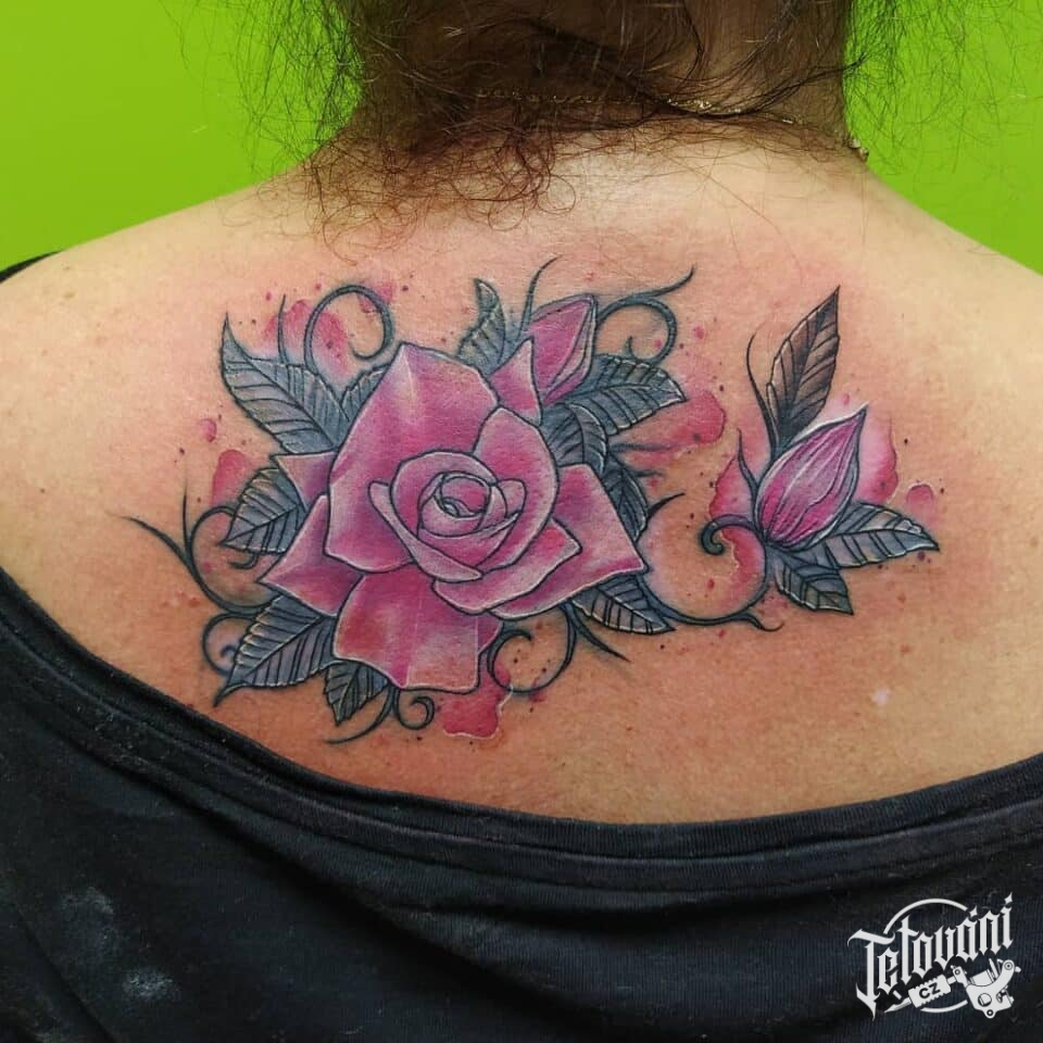 Tetování květiny, růže na záda