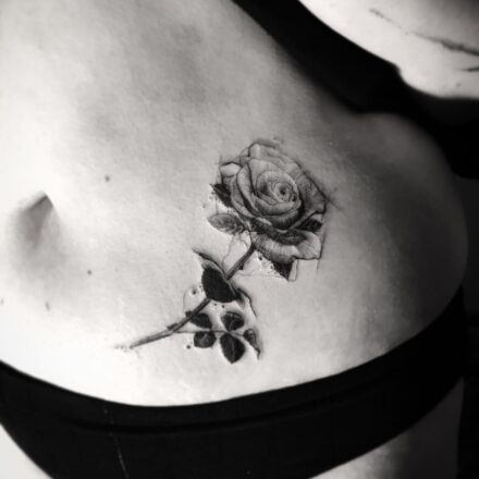 Tetování květiny, růže pod prso