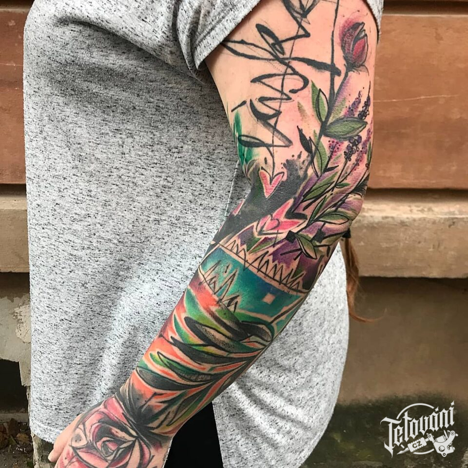 Tetování květiny, růže, rukáv