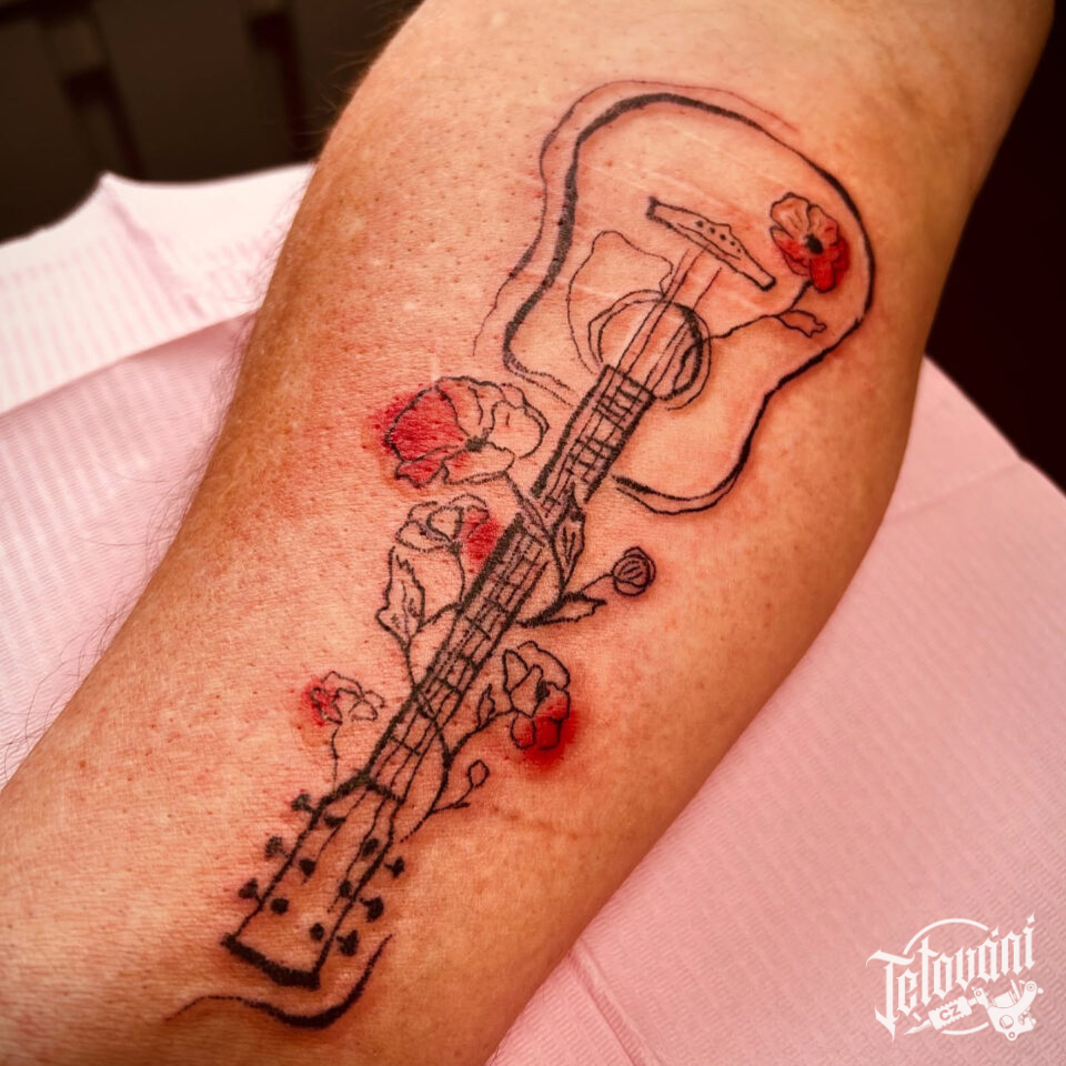 Tetování květiny s kytar...