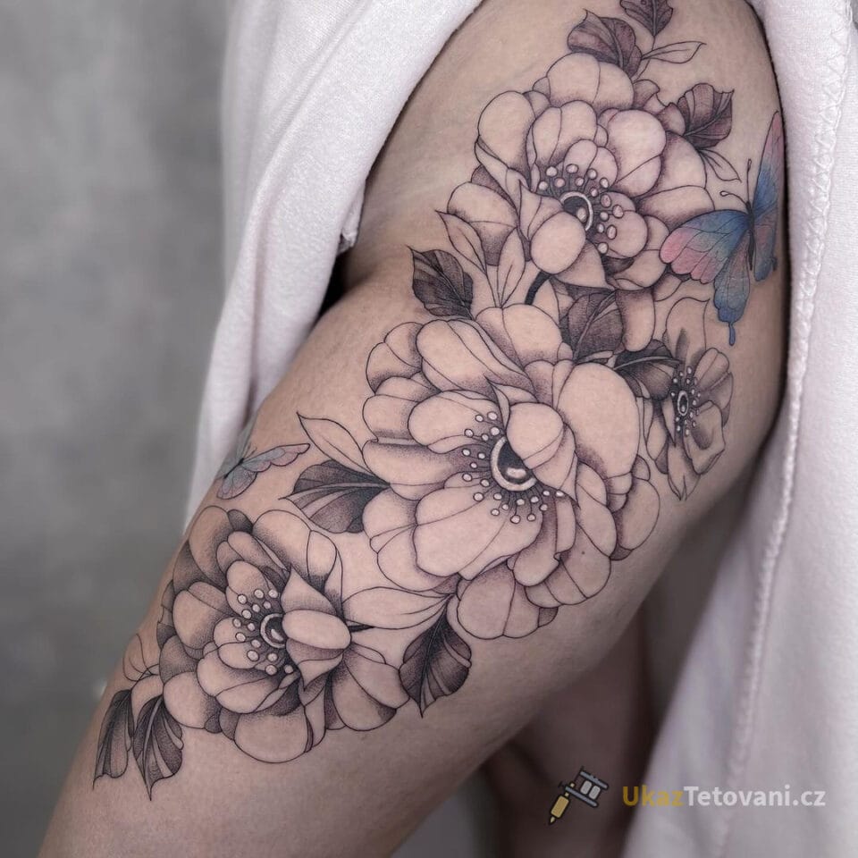 Tetování květiny s motý...