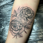 Tetování květiny s trojúhelníkem a kruhem na předloktí