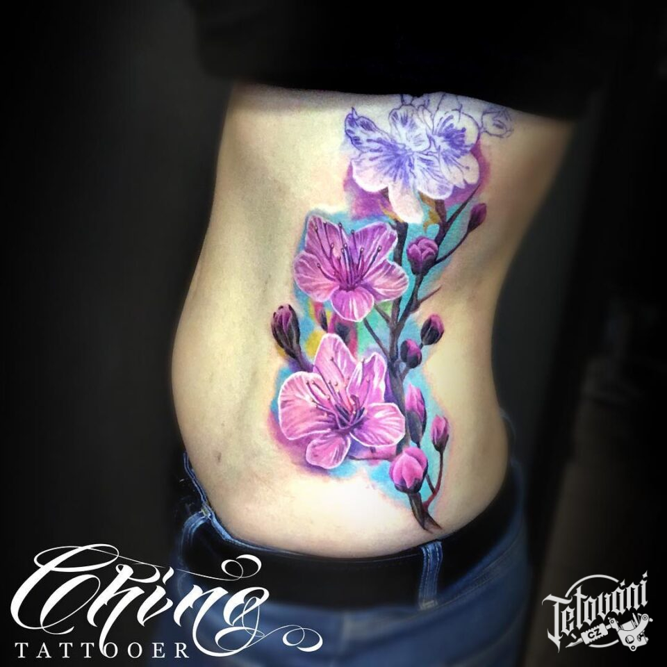 Tetování květiny sakura na boku